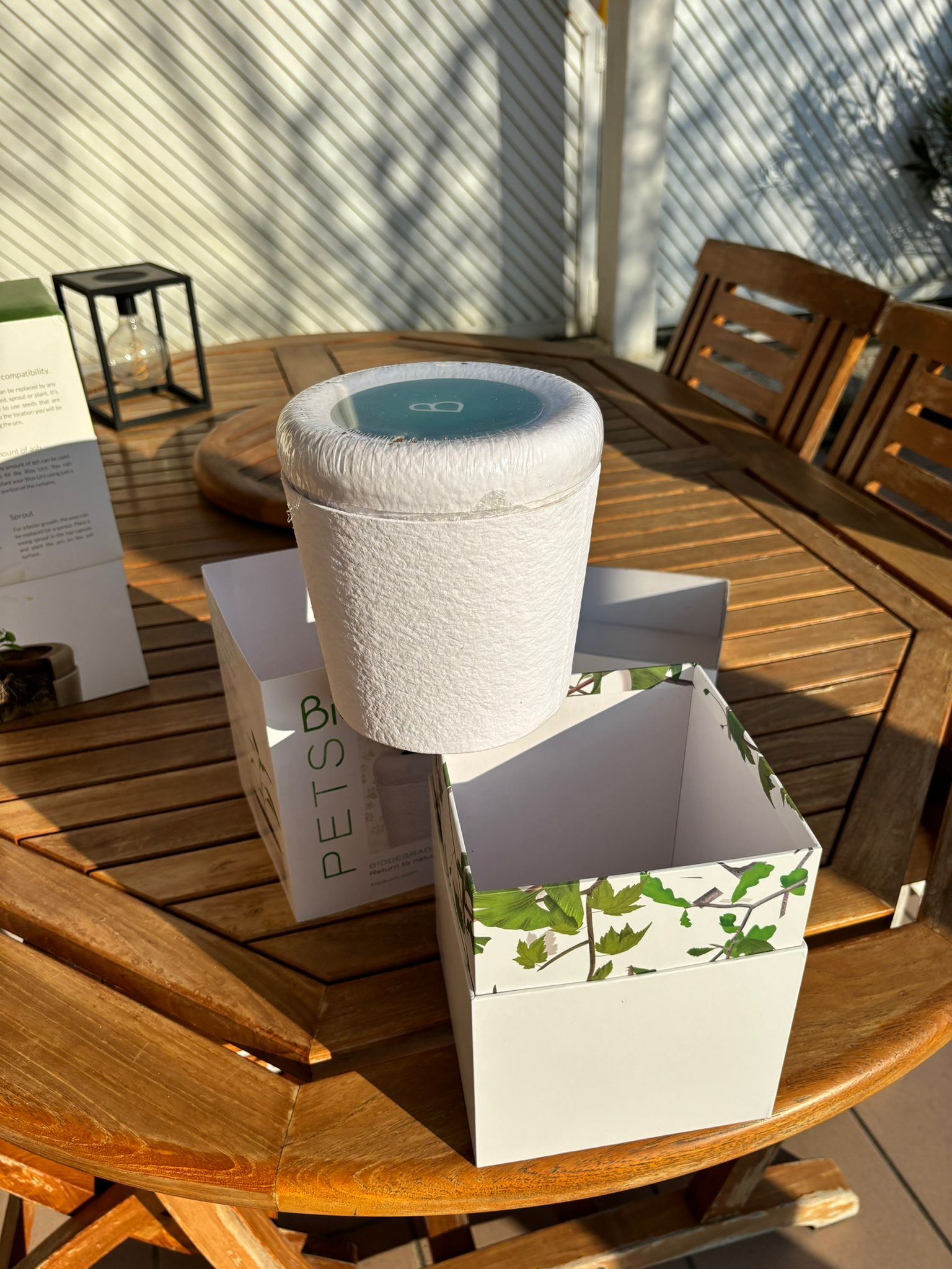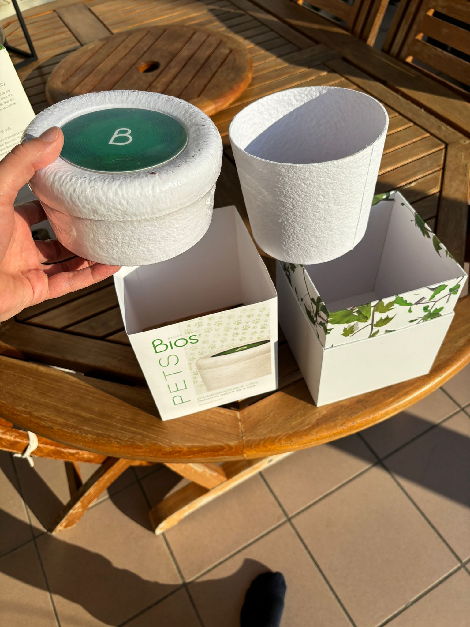 L'urne biodégradable BIOS est fabriquée avec des matériaux biodégradables la Cellulose et les fibres naturelles.