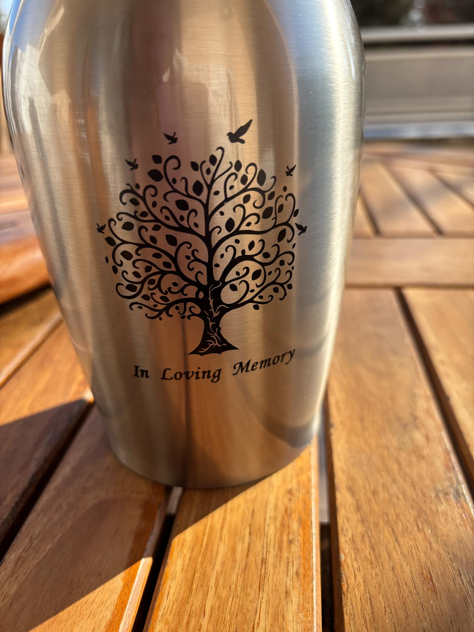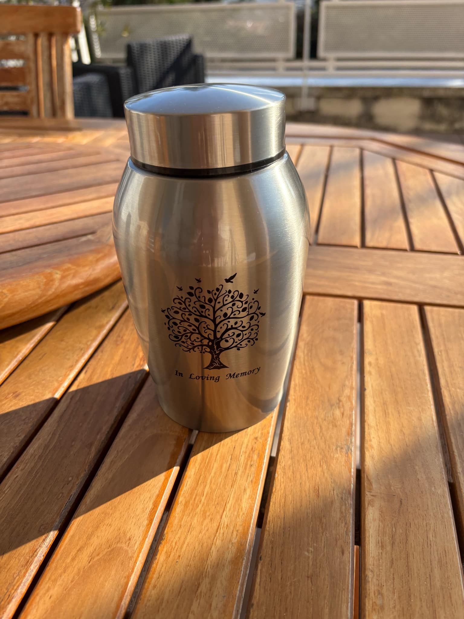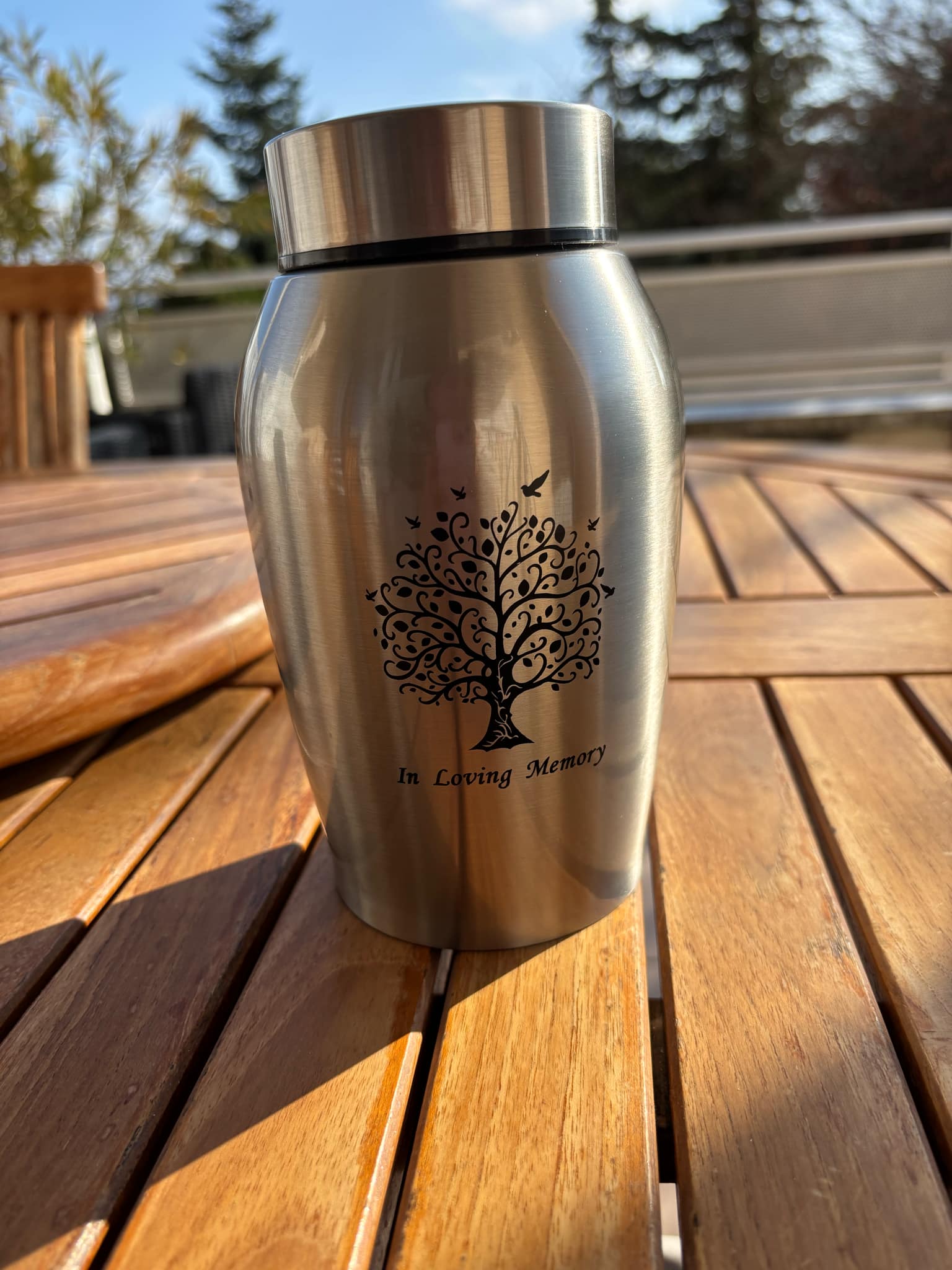 Offrez un hommage élégant et intemporel à votre compagnon chat ou petit chien avec cette urne funéraire argentée en acier inoxydable, ornée d’un délicat motif Arbre de Vie. Symbole de mémoire et d’éternité, elle permet de préserver les cendres de votre animal avec respect et sérénité.