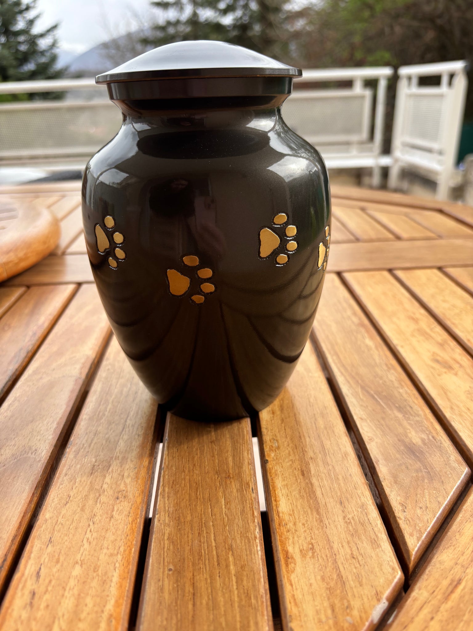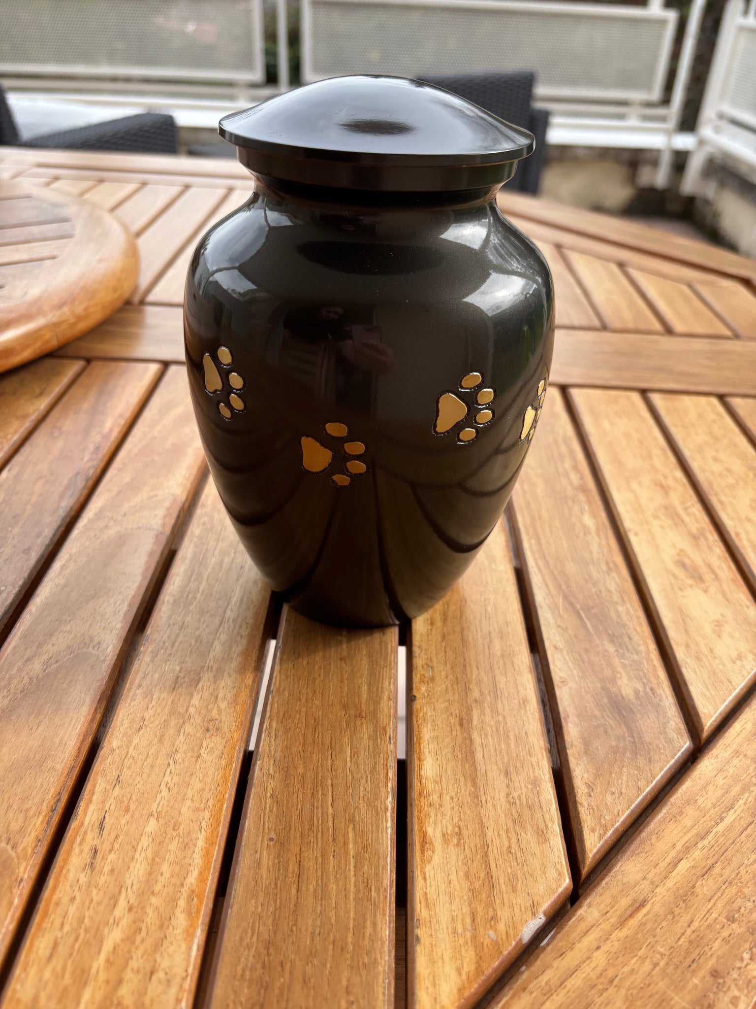 L’Urne KOKIA est ainsi un modèle tout à fait adéquat pour cela. Elle a spécialement été conçue pour être une urne funéraire pour animaux, ce qui explique sa petite taille ainsi que son design. En effet, celle-ci est de couleur gris foncé, des petits détails en forme de pattes de couleur bronze sur le pourtour de l’urne cinéraire ont été ajoutés pour la rendre plus propre à son utilisation. Sobre et simple, son design reste cependant magnifique, tant qu’elle pourrait s’accorder parfaitement à n’importe quelle décoration. En effet, si vous souhaitez conserver l’urne chez vous, vous pourrez la placer à la vue de tous sans aucun souci.