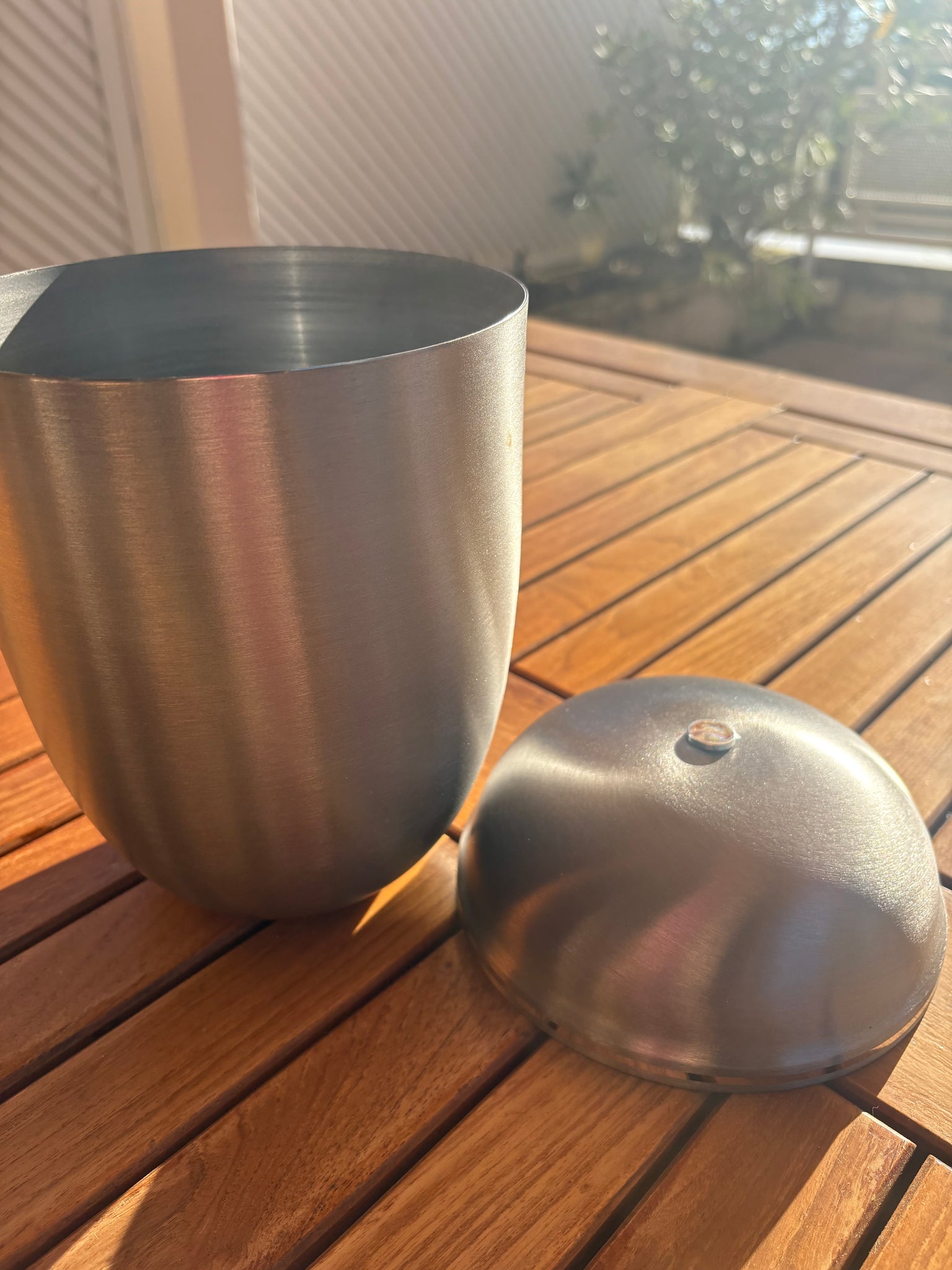 L’urne funéraire Canada Grise présente une finition grise brillante et argentée, au rendu lisse et contemporain. Son design arrondi et équilibré lui confère une présence sobre et apaisante. Entièrement unie, cette urne ne comporte ni motifs, ni gravures, ni éléments décoratifs rapportés, afin de conserver une esthétique simple et respectueuse.