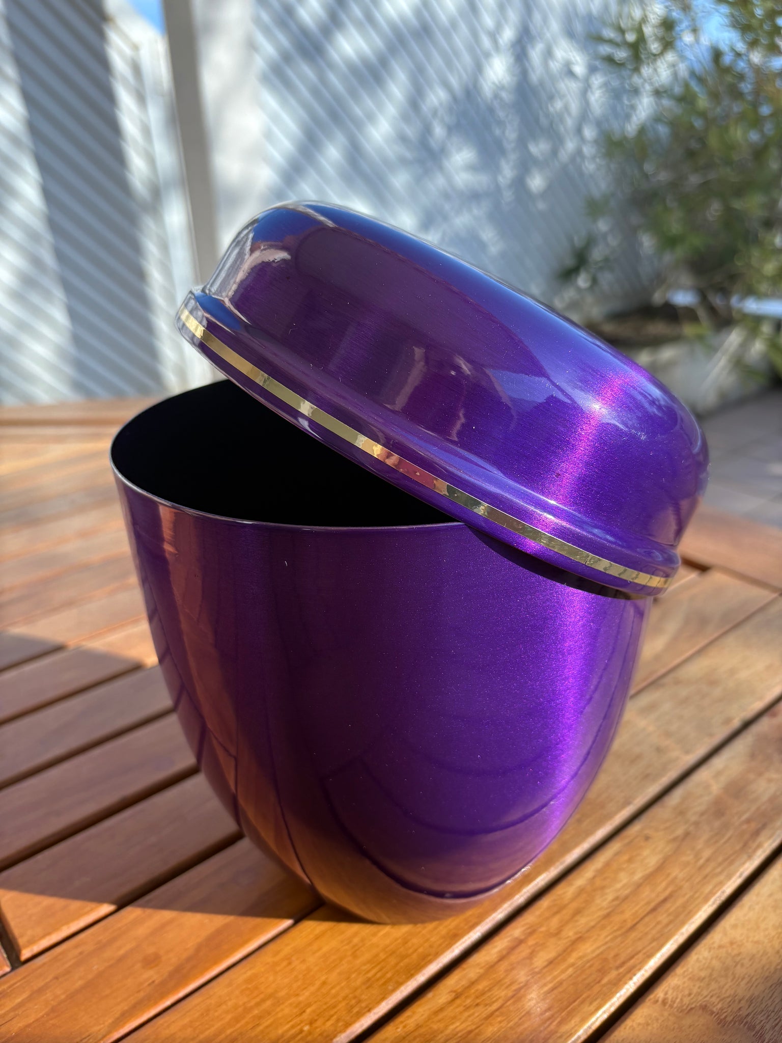 L’urne funéraire Paris Violette se distingue par une finition violette profonde et élégante, au rendu légèrement nacré, apportant douceur et modernité. Son design sobre est subtilement rehaussé par un liseré doré discret, qui souligne harmonieusement ses lignes arrondies. Proposée dans une teinte unie, cette urne ne présente ni motifs, ni gravures, ni empreintes décoratives, afin de préserver une esthétique épurée, apaisante et intemporelle. L’urne funéraire Paris Violette est un produit funéraire simple, moderne et respectueux, pensé pour un hommage digne et serein.